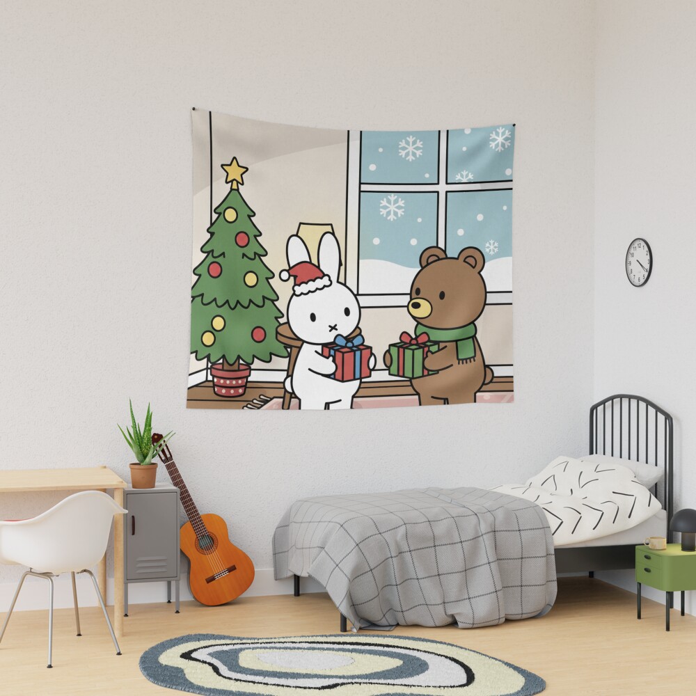 Christmas Miffy Exchanging Gifts With Boris Tapestry