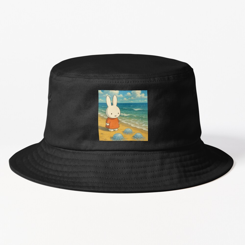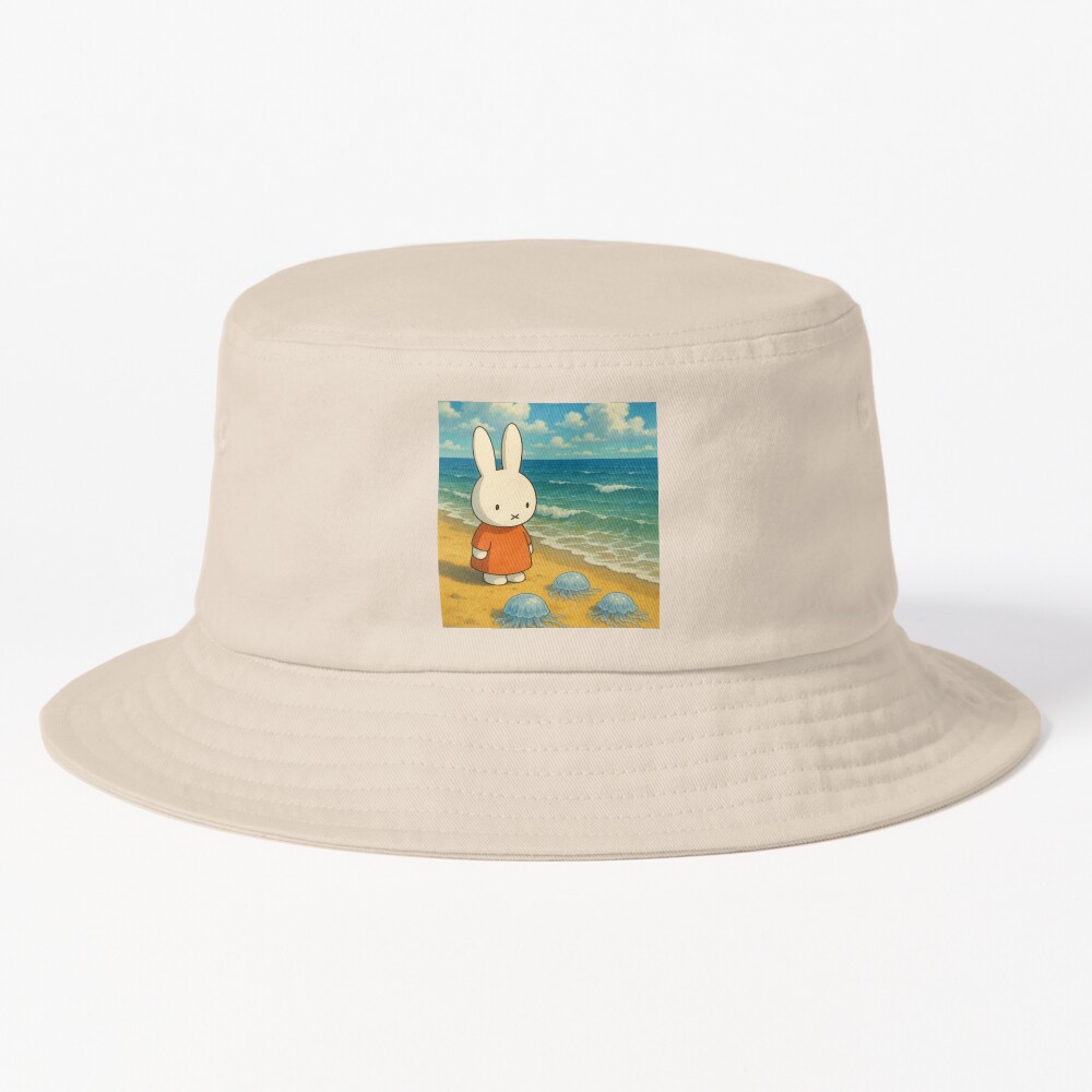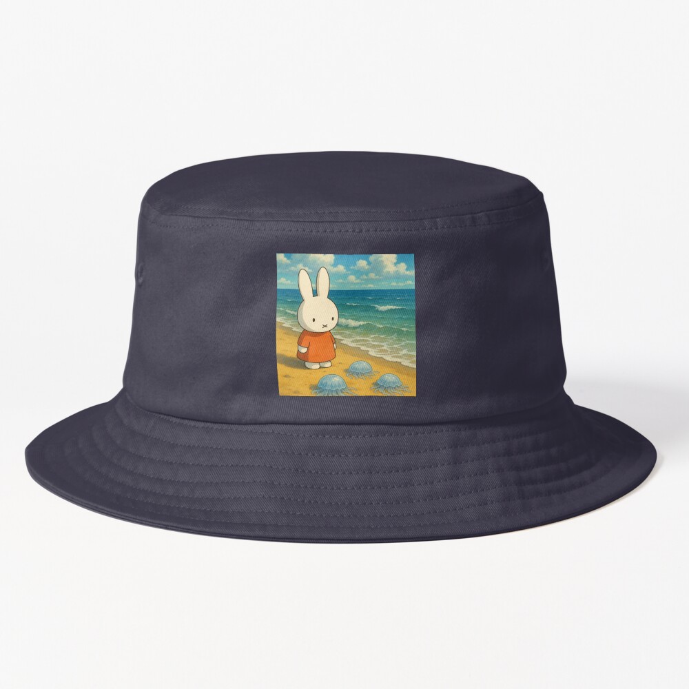 Ghibli Artstyle Inspired Miffy Looking At Jellyfish Bucket Hat